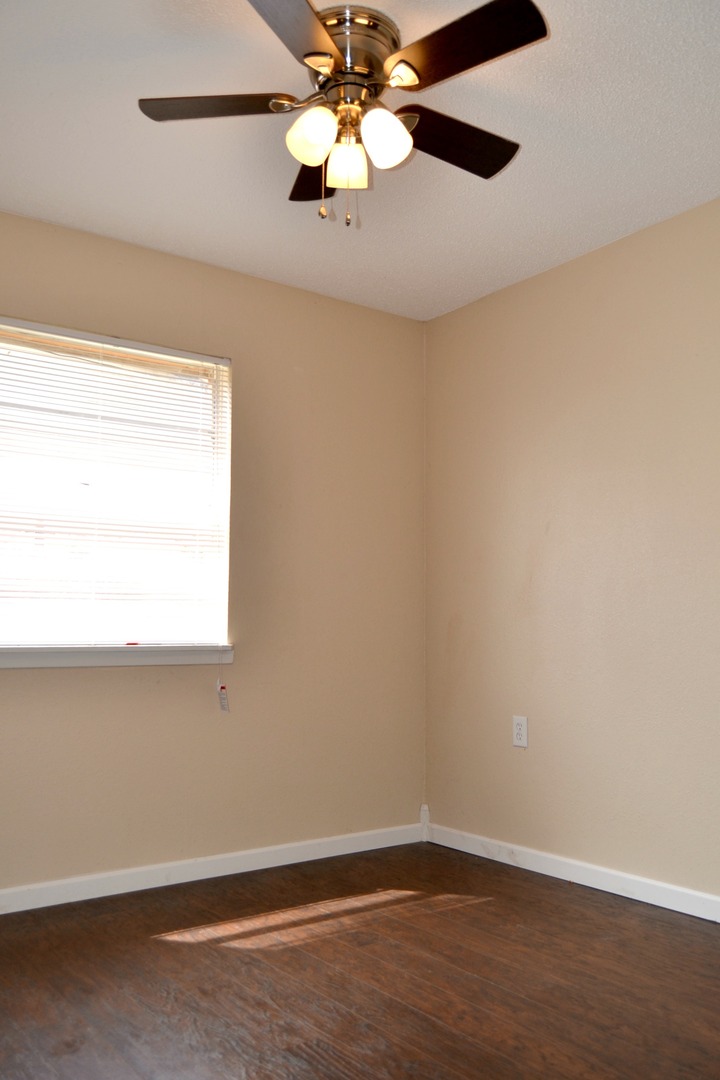 Available for immediate move-in. Spacious three bedroom, two bathroom home with a stand-up shower in the master suite. This corner lot home with a fully fenced yard features tile and laminate floors throughout, NO CARPET! The over-sized living room will handle the entire family, and there is a dining area in the kitchen. The attached one car garage is extra deep and has an additional storage area, and a garage door opener with remote. There is a separate storage shed in the back yard.
