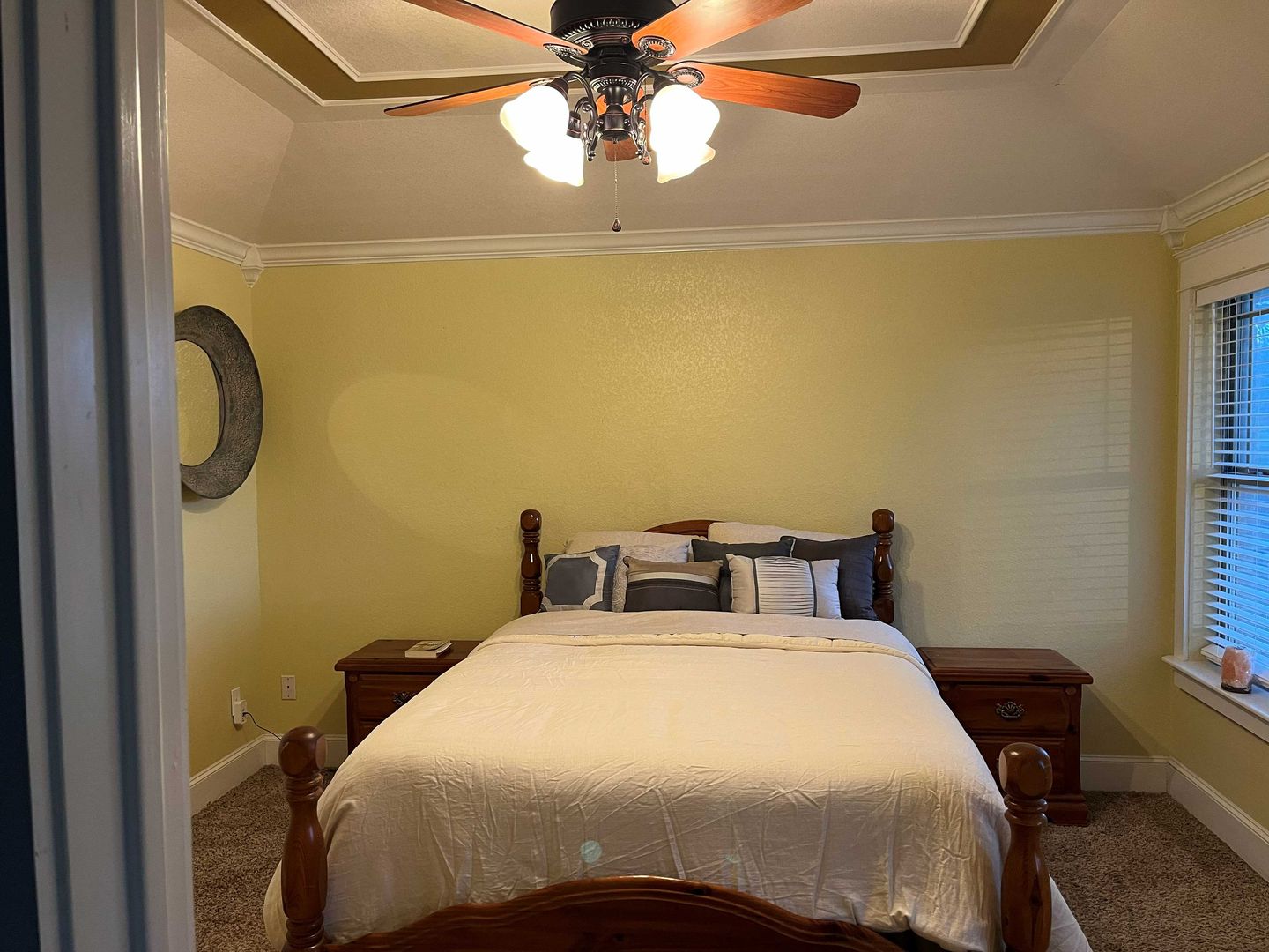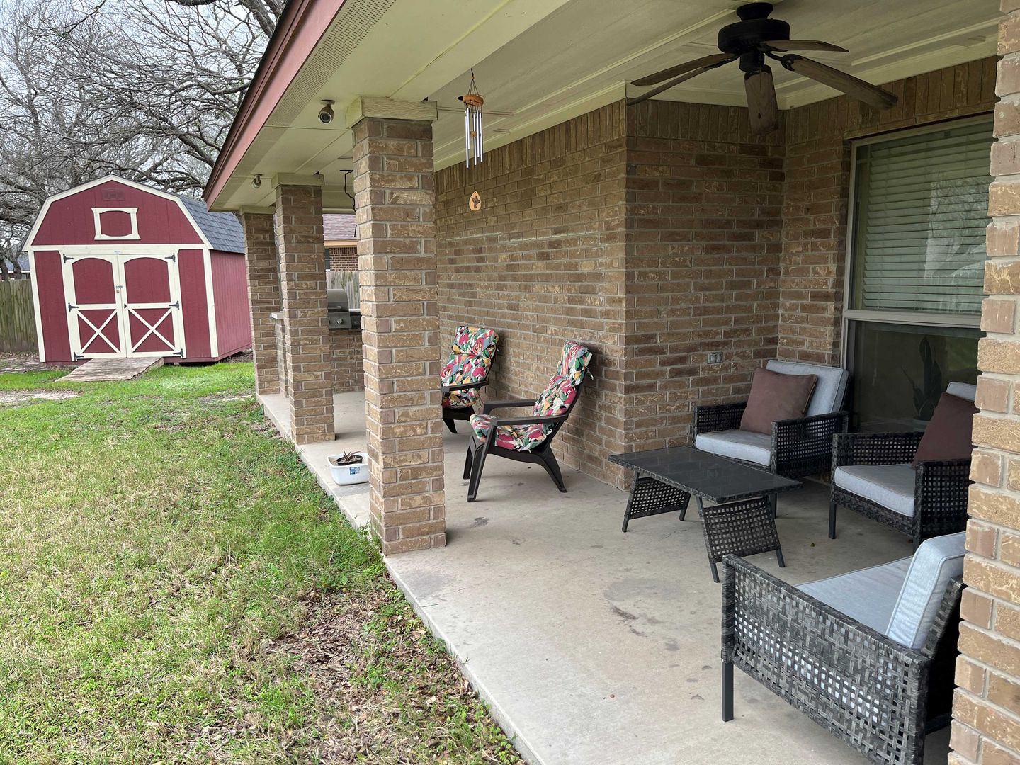 Welcome home to 5504 Eldie Court, a beautiful place to lay your head. From its brick and rock exterior to its large, covered, rear patio with built-in BBQ grill, to a spacious interior with granite countertops, attractive kitchen backsplash, stainless appliances, high ceilings and crown molding, you will find your peace somewhere outdoors or indoors, here. And space! Yes, there are three bedrooms and an office with desk and (17) shelves, but the number of additional places to organize your belongings in and around this house will make your local self-storage businesses jealous. Not only is the kitchen well-equipped with generous cabinetry and a pantry with glass door, but on the other side of two pocket doors, there are two sets of cabinets in the utility room, one above the washer and dryer (included), and the other above and below the utility sink. In the bathrooms there are also cabinets and drawers below both vanities and above the commodes. Each bedroom has a walk-in closet with either rods and shelves or rods and shoe racks. Then there is also a 2 car garage with opener, and a sizable wood storage building. Amenities include full yard irrigation system, water filtration system, ceiling fans, specialty stainless and glass vent hood, and more. Invite a friend to tour with you and contact your favorite REALTOR soon. Ask them to show you 5504 Eldie Court!