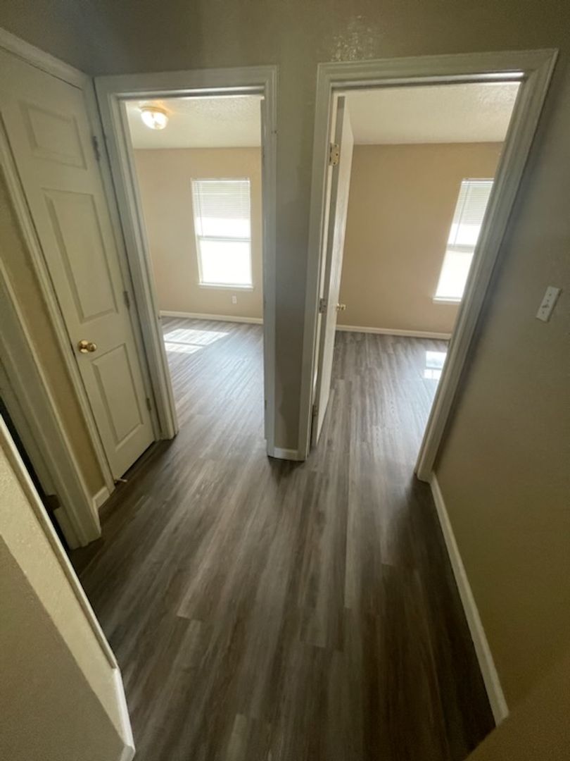 Available 05-12-26. This apartment features a spacious floor plan. It has an generous kitchen that is great for entertaining and has three bedrooms and two full baths. New tenants will enjoy having a garage for parking or storage! New flooring throughout February 2023.