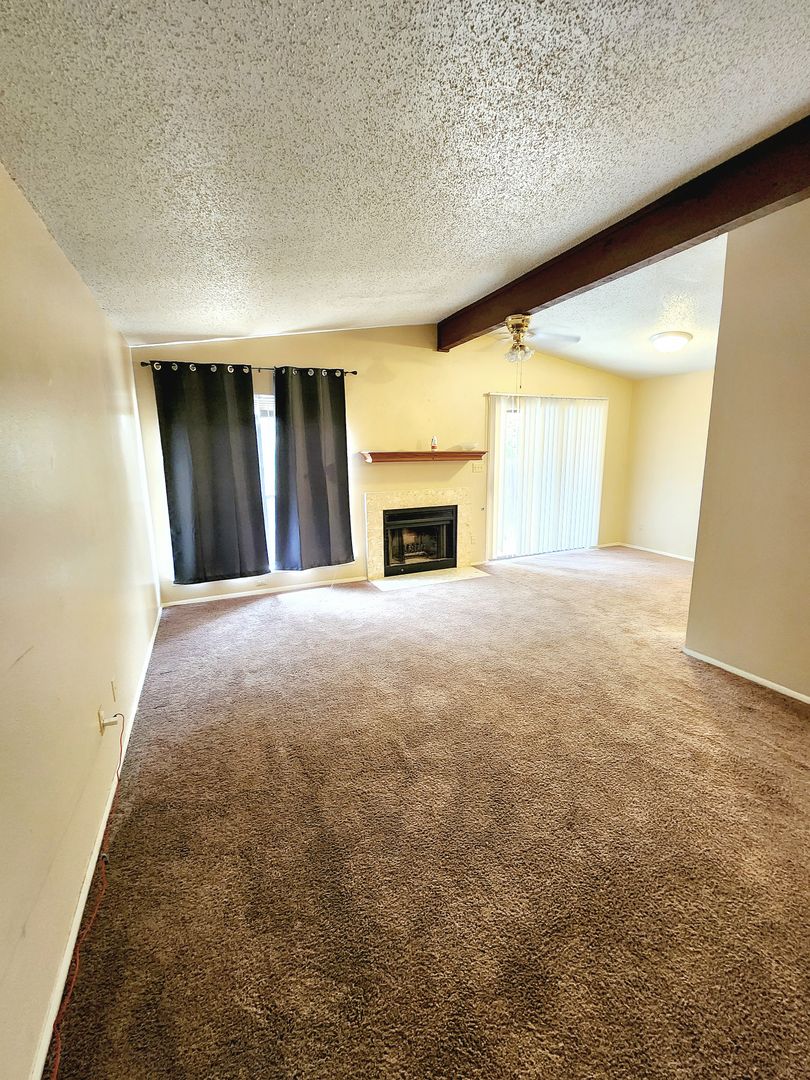 Available January 29, 2026. Charming 3-bedroom, 2-bathroom town home with attached garage. The interior is bright and open, featuring a fireplace with carpet and vinyl flooring throughout. Outside, you will find a covered back patio and a fenced back yard.